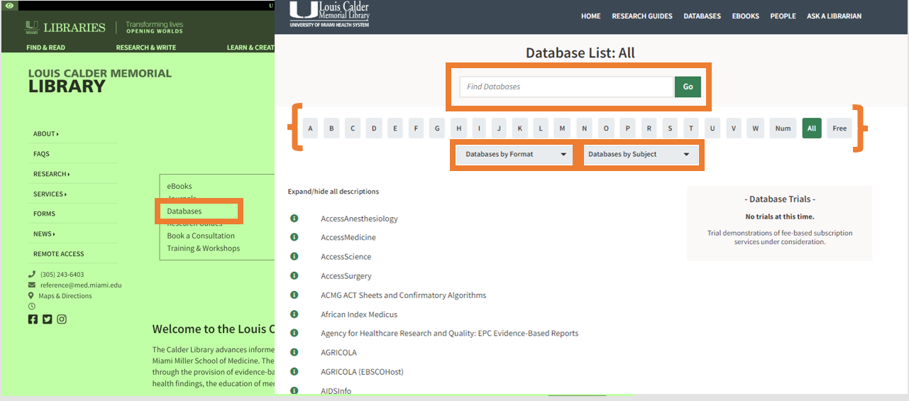 - Ask a Librarian: http://calder.med.miami.edu/librarianask.html